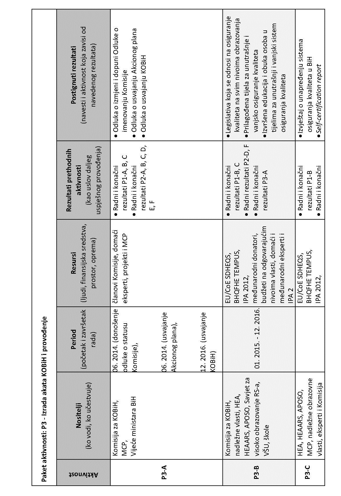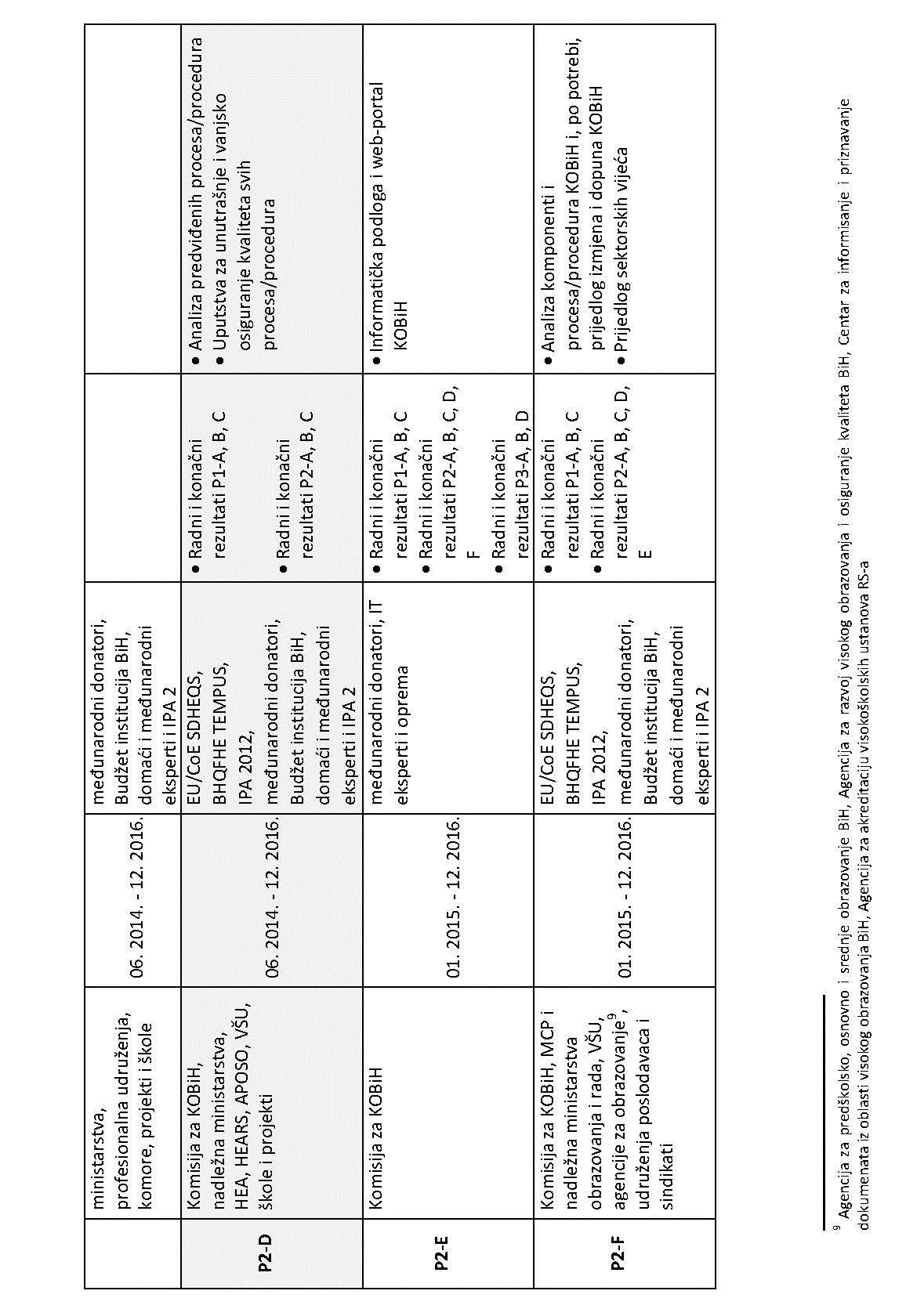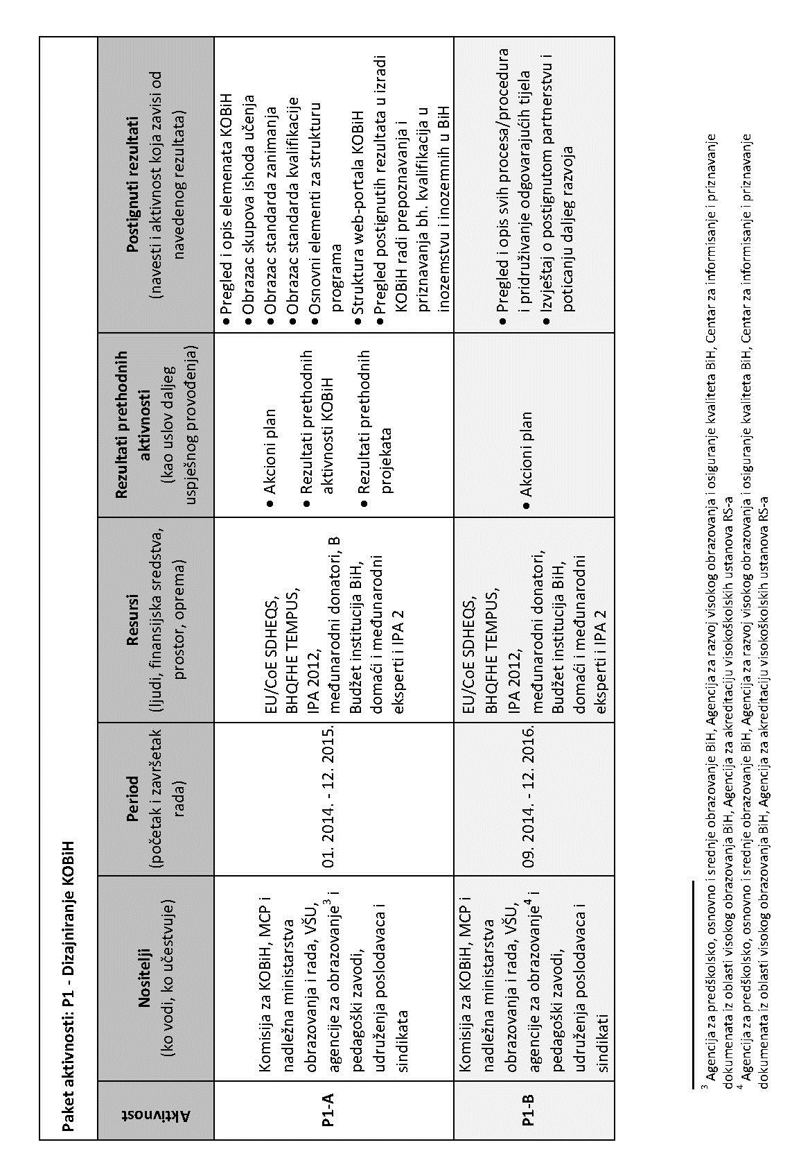 S obzirom na činjenicu da je to dugoročni zadatak, ukazuje se potreba za brzim formiranjem interresorne komisije koja će izraditi i predložiti radni plan svih glavnih aktivnosti u okviru izrade Kvalifikacijskog okvira u Bosni i Hercegovini (uključujući metodologiju, standarde, potrebna sredstva, rokove, operativne timove i drugo).
