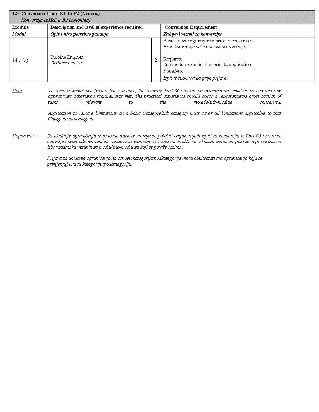 Napomena: Nakon konverzije nacionalne dozvole u Part-66 dozvolu u skladu sa ovim dodatkom, dozvola će u potpunosti podlijegati zahtjevima za izdavanje Part-66 dozvole.
