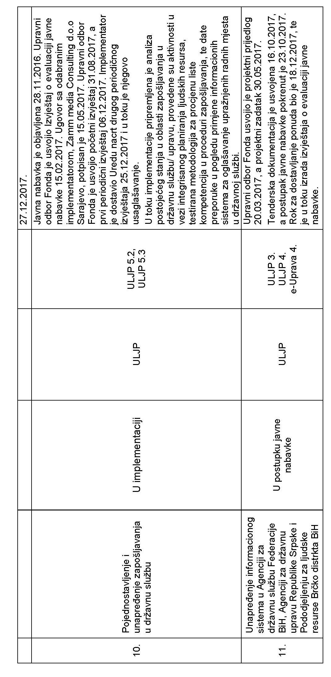 11. "Uspostavljanje savremenih odjela za upravljanje ljudskim potencijalima u organima uprave u BiH" iz reformske oblasti Upravljanje ljudskim potencijalima, koji se vodi pod šifrom 0206120;