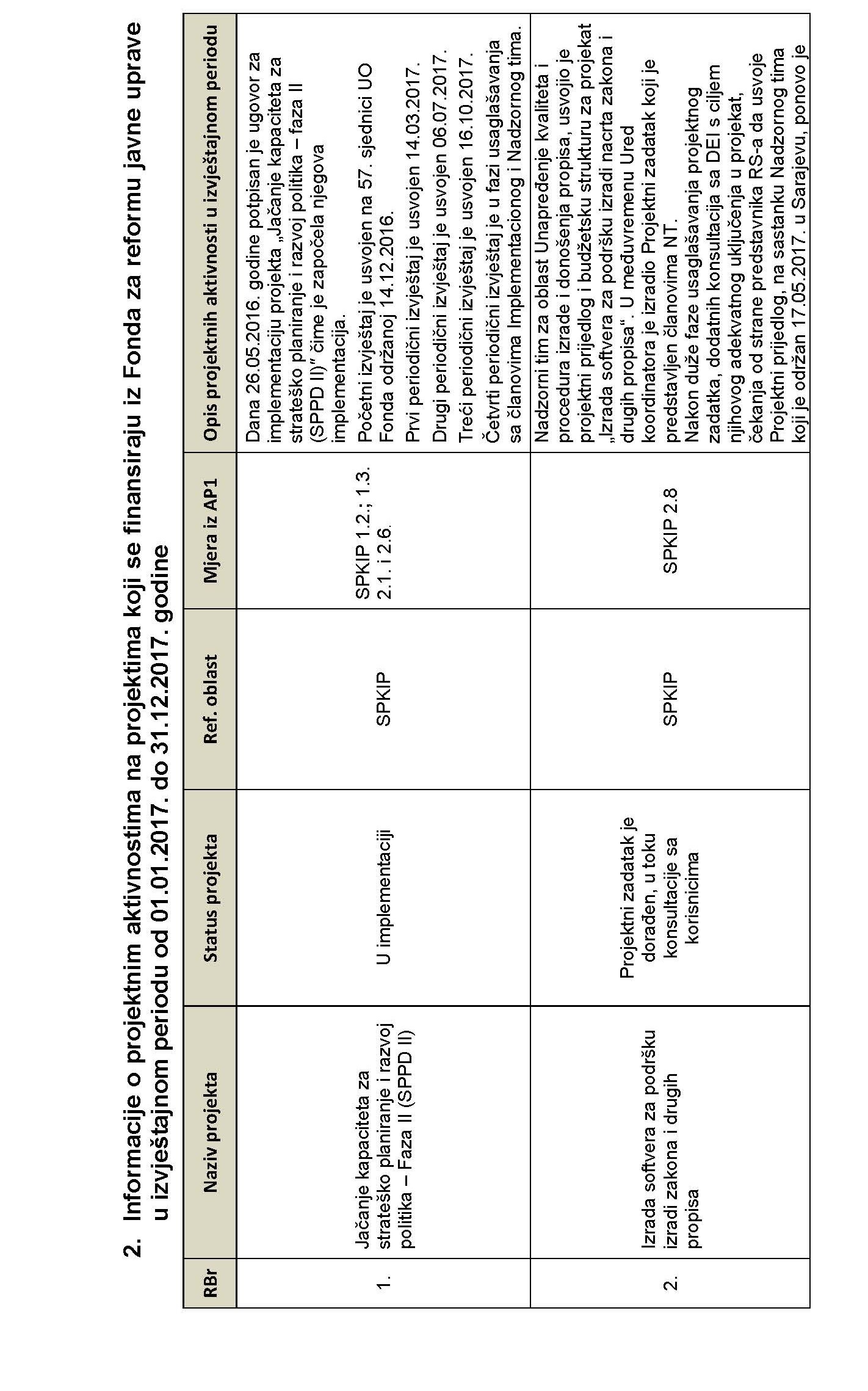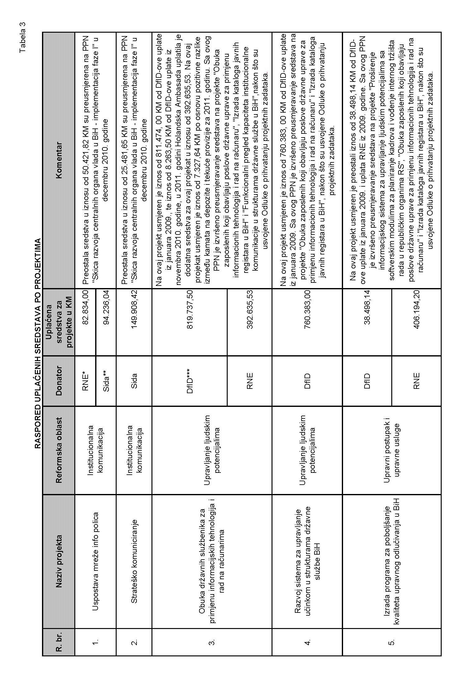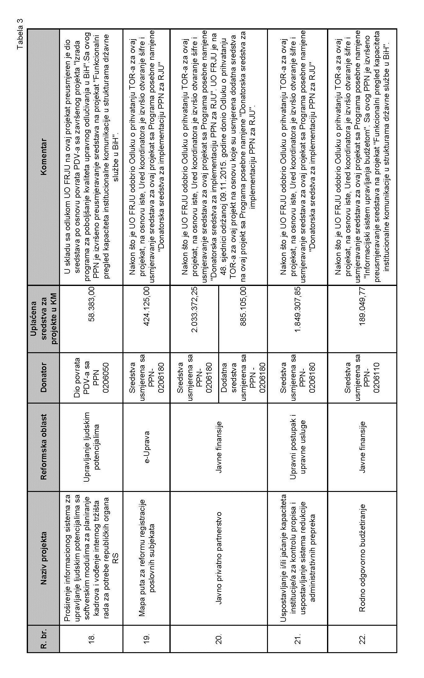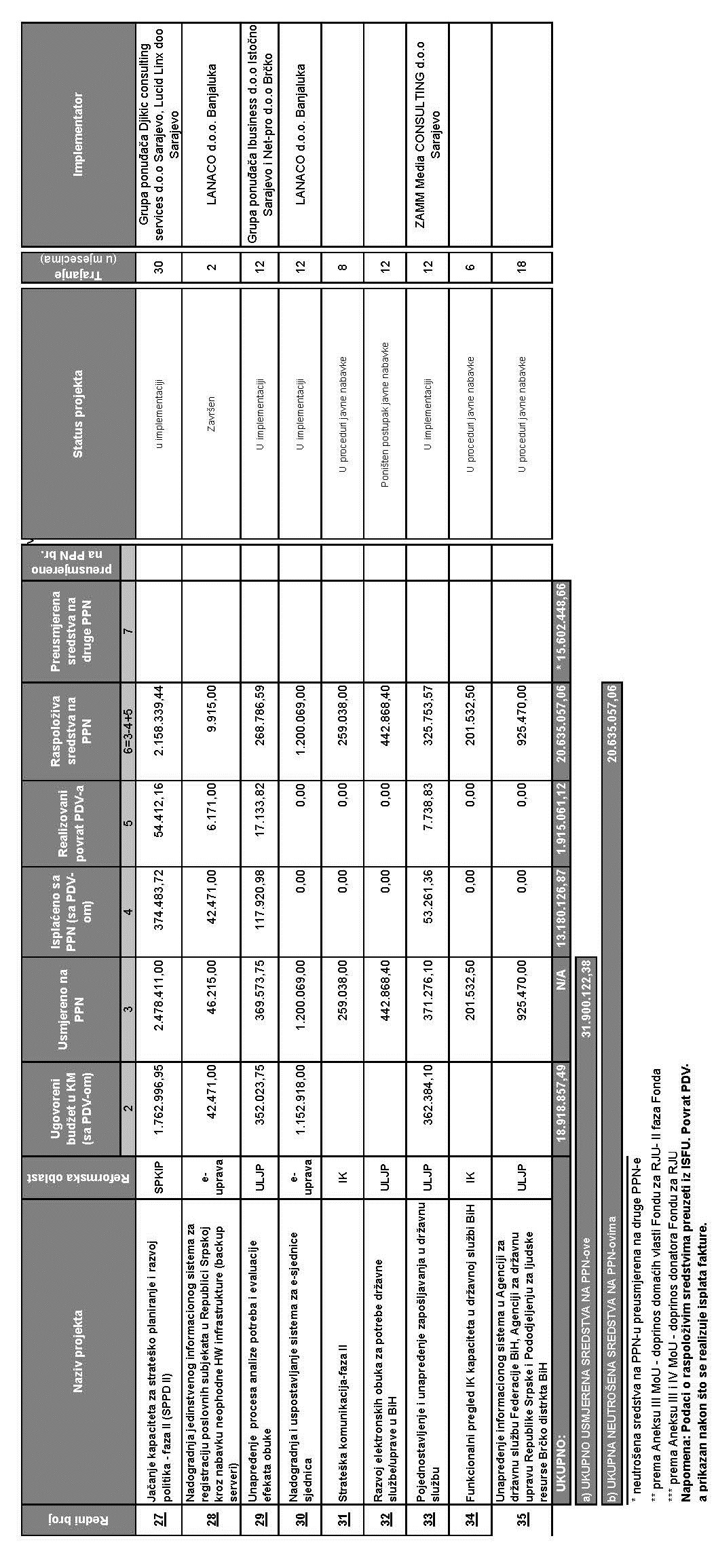 1. Pregled projekata koje je odobrio Upravni odbor Fonda za reformu javne uprave za finansiranje iz sredstava Fonda za reformu javne uprave (Tabela 1);