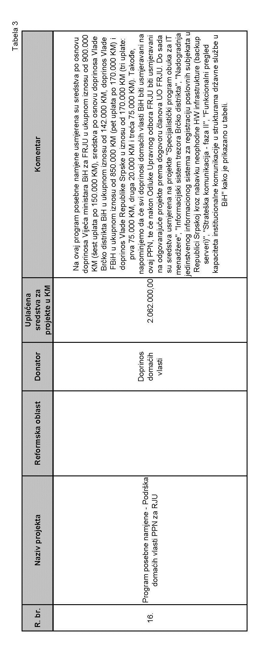 16. "Podrška domaćih vlasti PPN za RJU"- na ovaj PPN, koji se u ISFU vodi pod šifrom 0206170, usmjerena su sredstva po osnovu doprinosa domaćih vlasti Fondu (Aneks III Memoranduma), koja će se, nakon što UO Fonda donese odgovarajuće odluke, preusmjeravati na projekte;