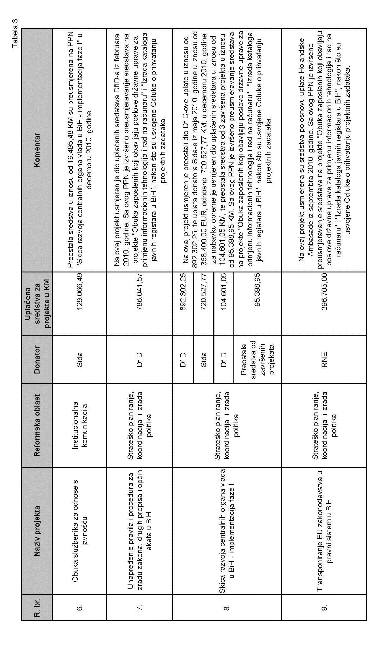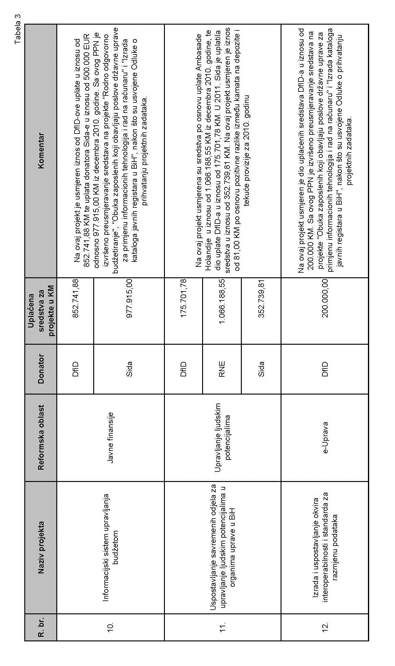 10. "Informacijski sistem upravljanja budžetom" iz reformske oblasti Javne finansije, koji se vodi pod šifrom 0206110;