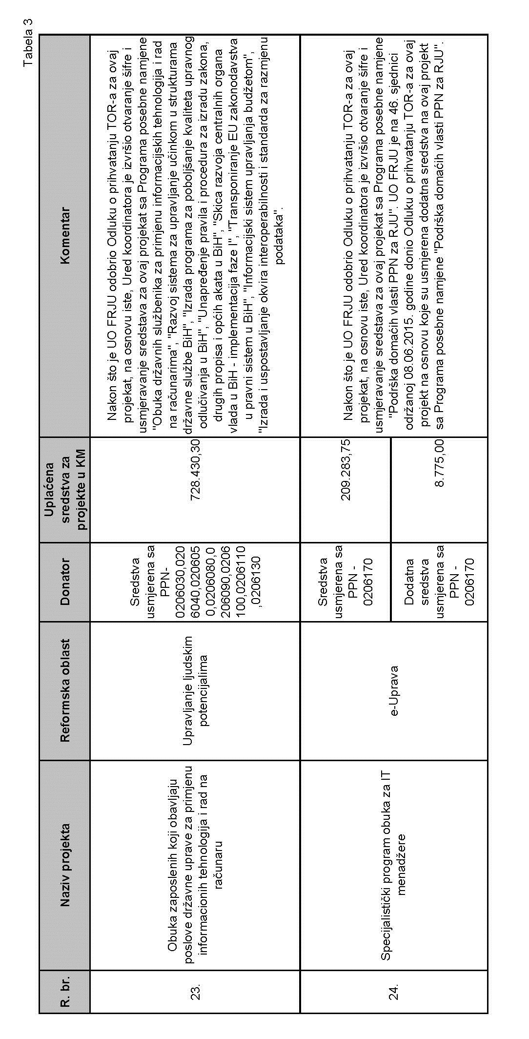 3.5 Obrazloženje realizacije projekata koji se finansiraju iz sredstava Fonda za reformu javne uprave
