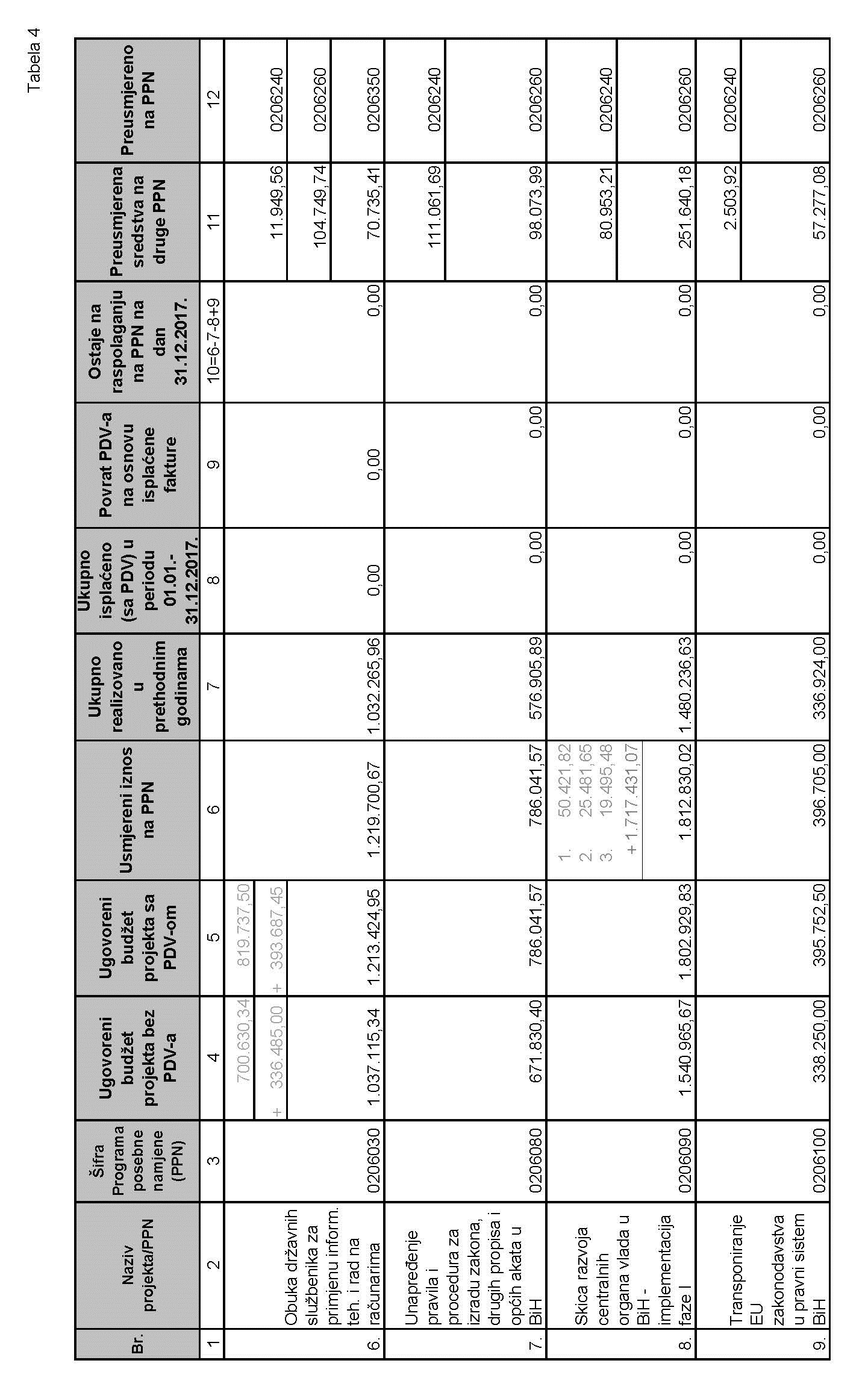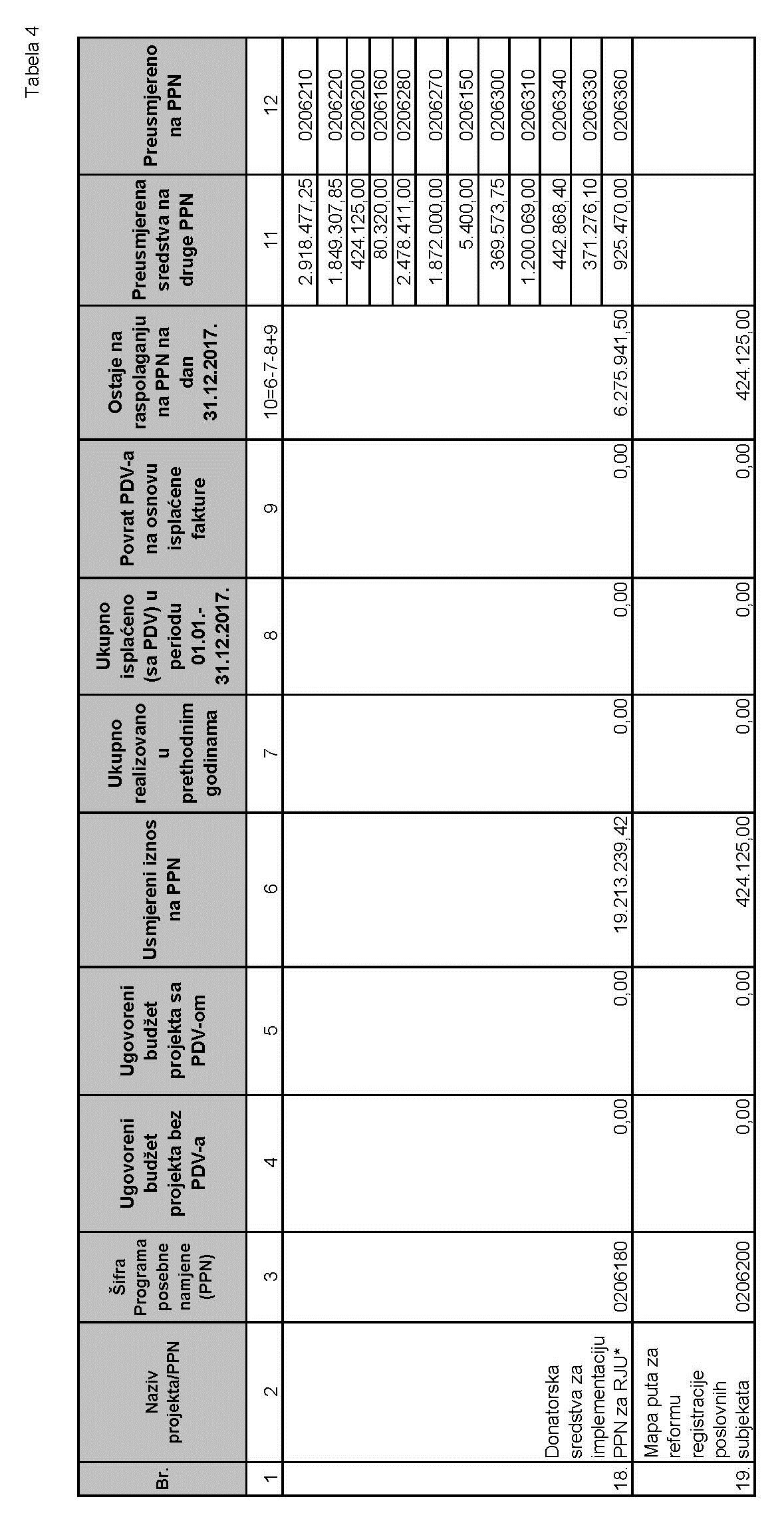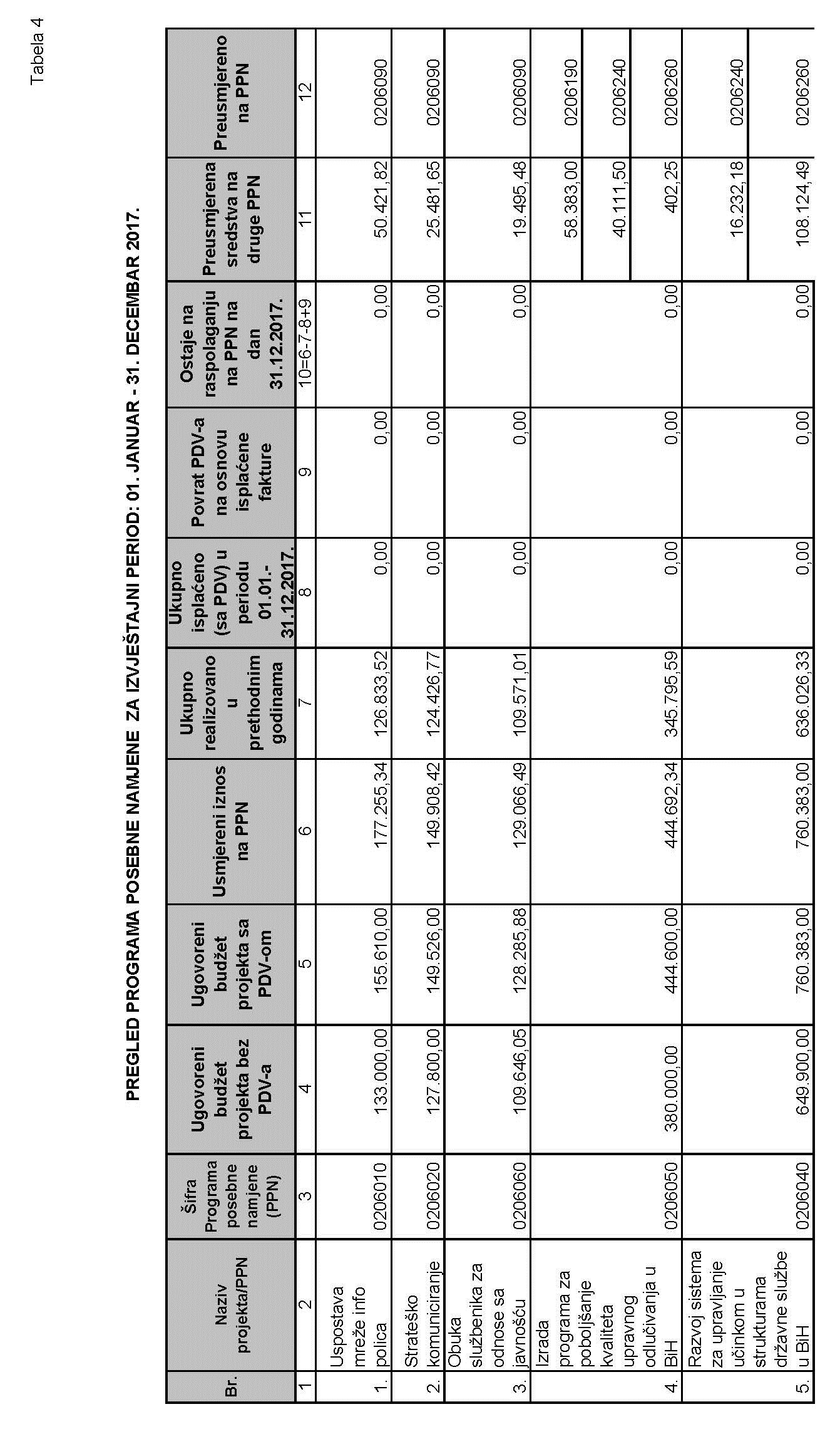 4. Pregled programa posebne namjene za izvještajni period 01. januar - 31. decembar 2017. godine (Tabela 4).