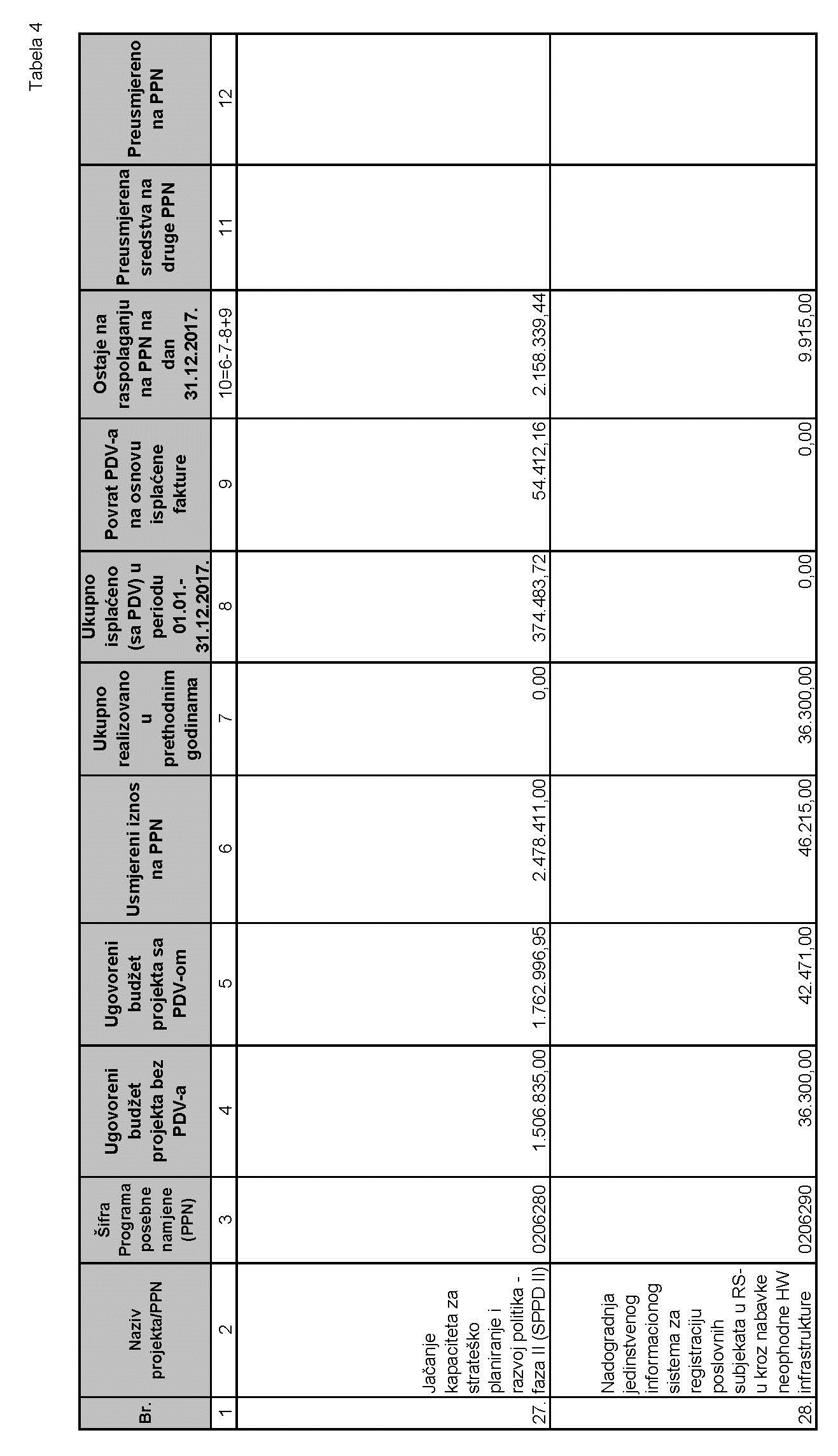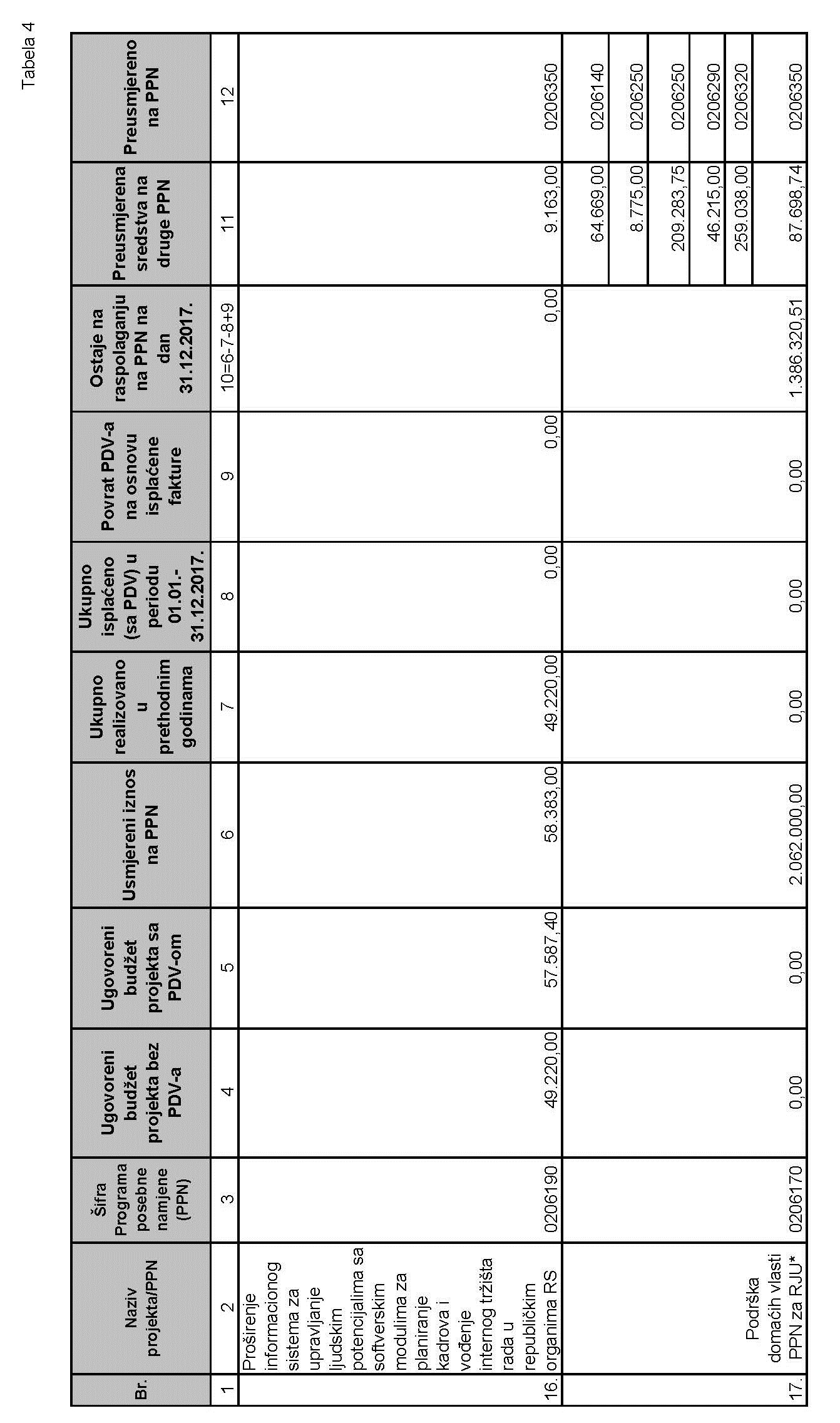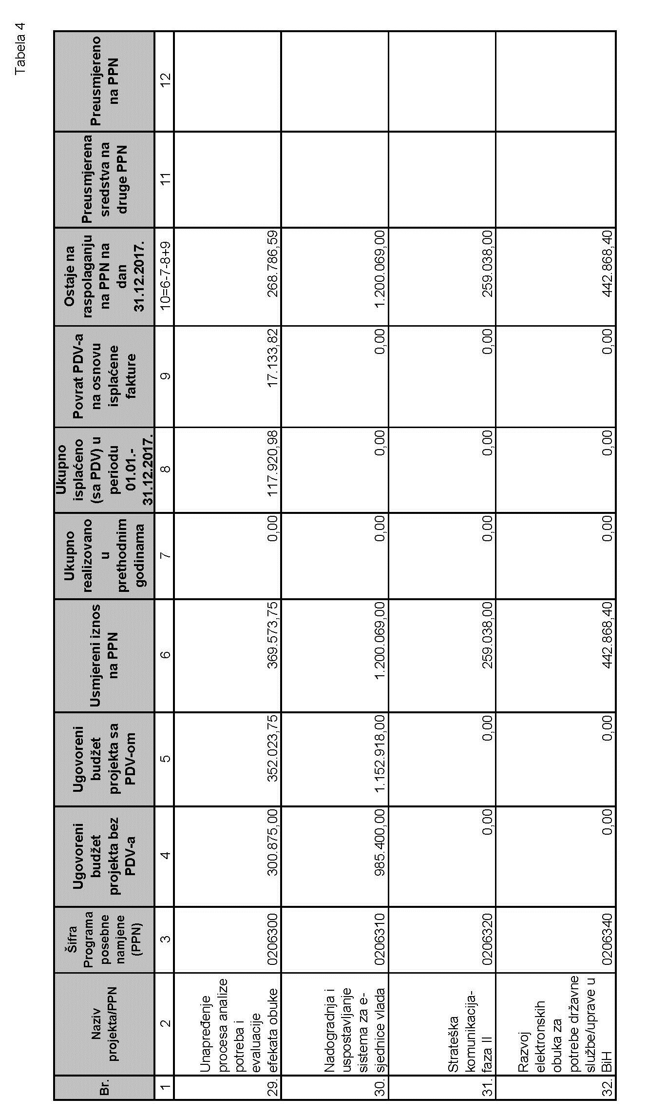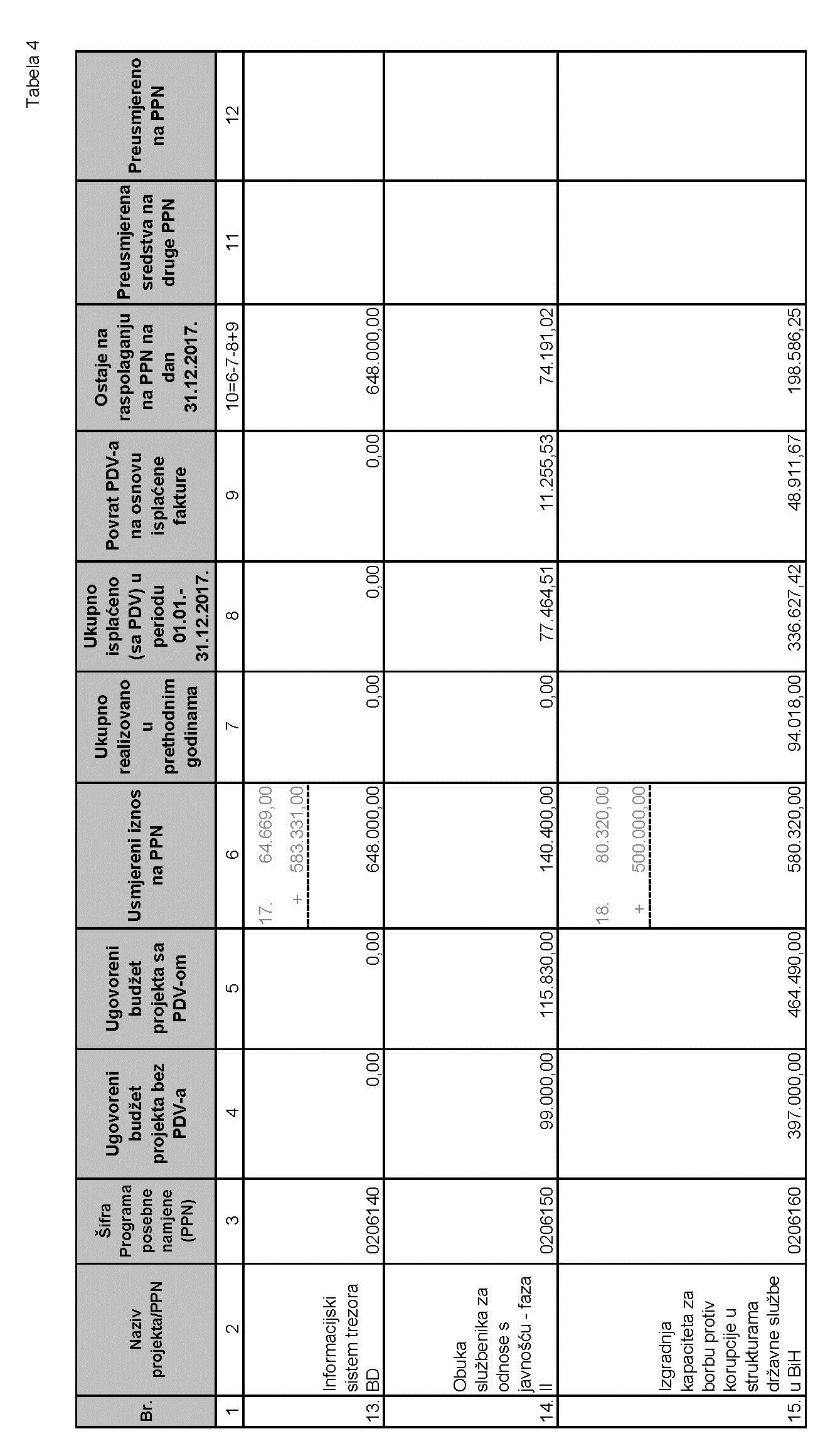 4. Pregled programa posebne namjene za izvještajni period 01. januar - 31. decembar 2017. godine (Tabela 4).