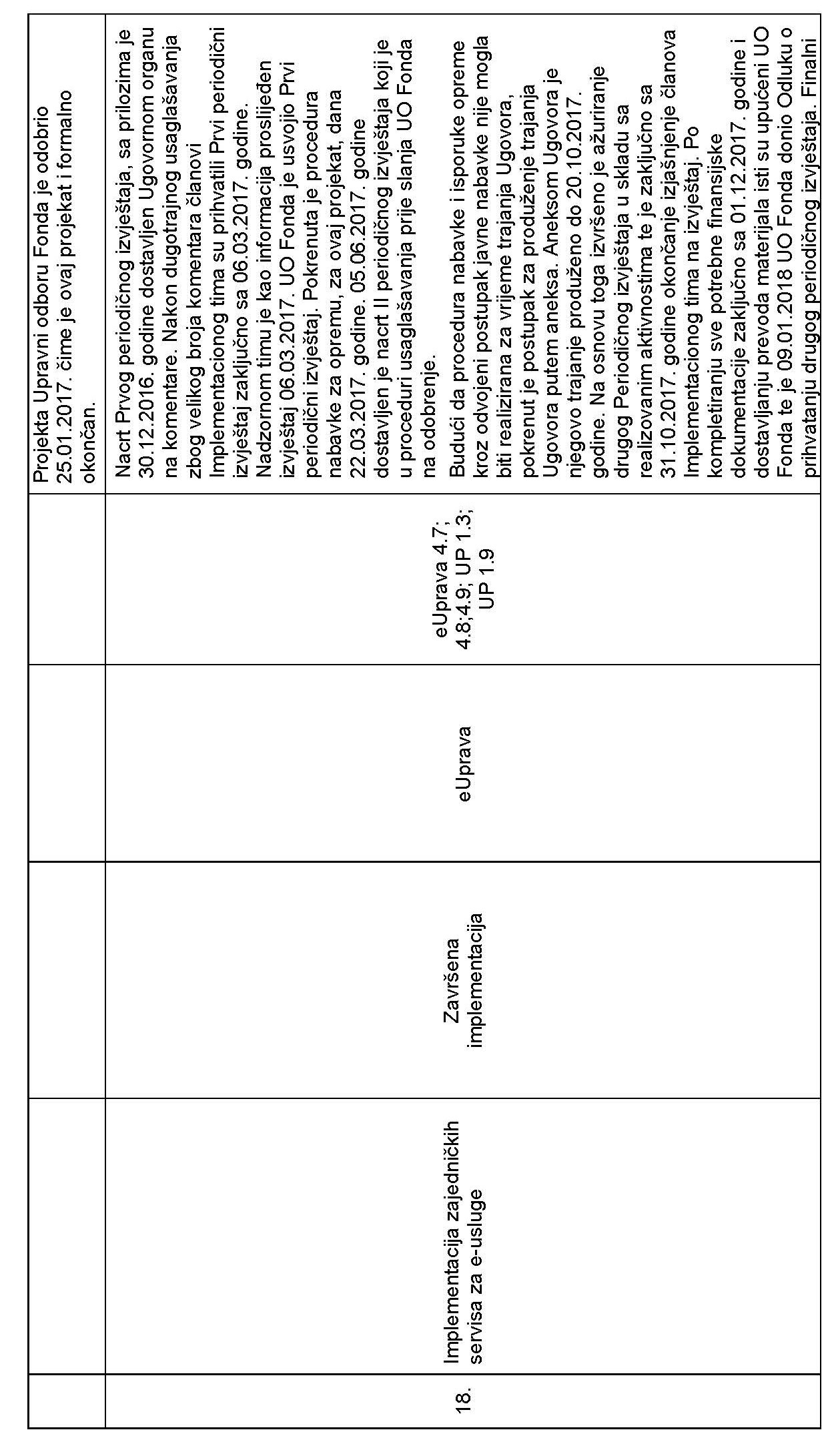 18. "Proširenje informacionog sistema za upravljanje ljudskim potencijalima sa softverskim modulima za planiranje kadrova i vođenje internog tržišta rada u republičkim organima RS" iz reformske oblasti Upravljanje ljudskim potencijalima koji se vodi pod šifrom 0206190;