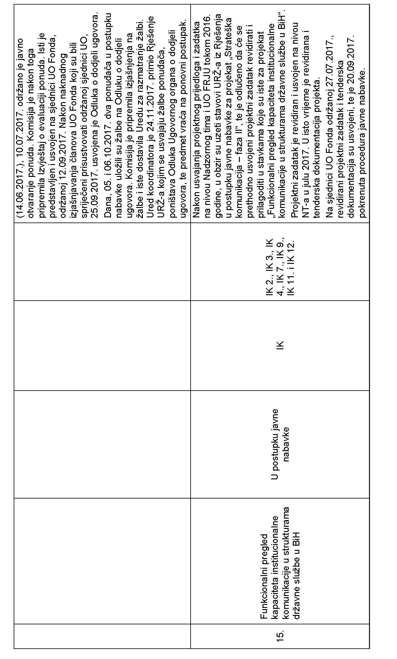 15. "Izgradnja kapaciteta za borbu protiv korupcije u strukturama državne službe BiH" iz reformskih oblasti Upravljanje ljudskim potencijalima i Institucionalna komunikacija koji se vodi pod šifrom 0206160.